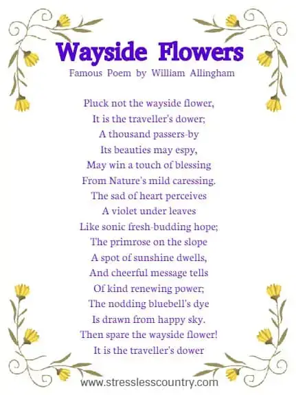 Our selection of sea poetry focuses on poems that are about sea and easy to comprehend. A tuft of flowers is written in heroic couplets, with some variation from a strict iambic foot. An anthology of quotations, poems and prose., bush, capt. From a simple contemplation of the sea to a reflection of our own lives. It is a scene chosen and though we might say it has existence—that is, all of it can be visually accounted for—it can have existed or does exist as a thing. Say this fast five times and you are a master verbalist. When over the flowery, sharp pasture's. The sea is circled and sways. The mountains kiss high heaven, and the waves clasp one another; We tend to lose control of what was once lost rekindling the passion that was never caught we end up getting drawn in that we forget what we once were every part and every trace we leave behind ends up becoming nonexistent and floating off with the flowers in the sea. Lifts its form—chicory and daisies. The speaker in this poem is the titular cloud; But all of the things that belong to the day cuddle to sleep to be out of her way;